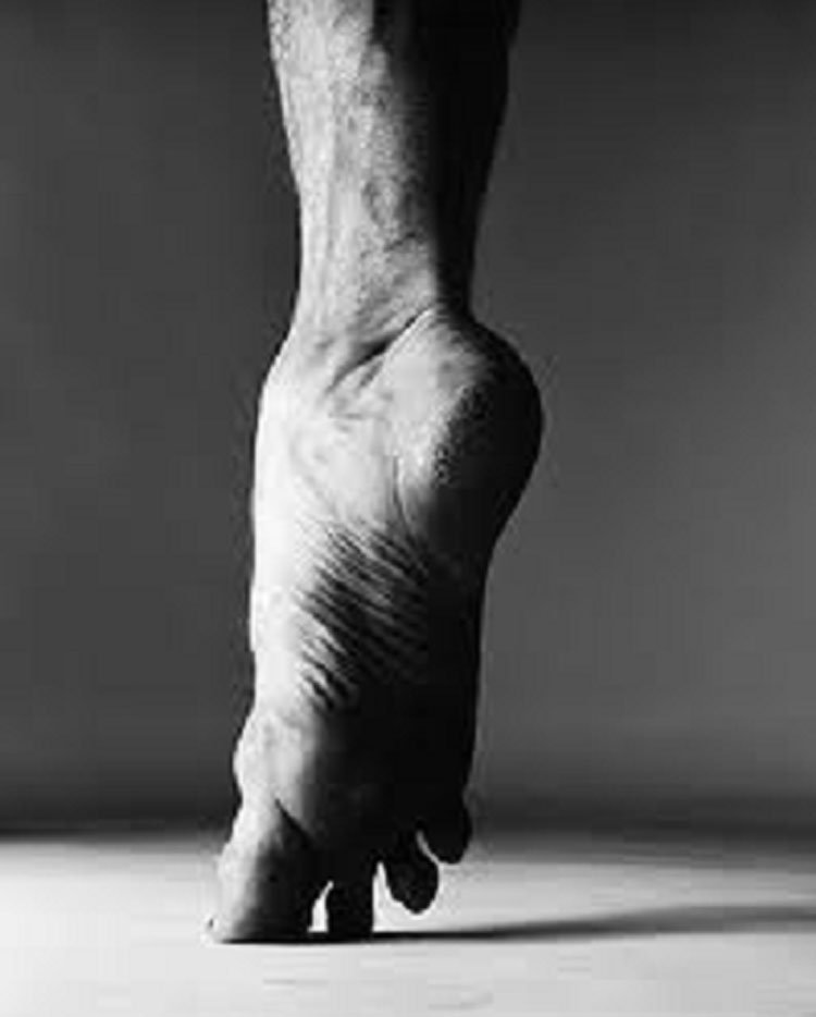 “… and woman come together in the third section in an exploration of creation myths. There is something Edenic about these pas de deux as opposed to the erotic charge that comes in later sections. ‘Eroticism is one of the primary instincts of dance’ and there are plenty of images that capture that instinct. One image is not published but described in a fabulous anecdote of one session between Richard Avedon and Rudolph Nuryev; where the dancer slowly raised his arms above his head, his penis rising at the same rate as his hands. What we can see from one of their sessions is a photo that shows that the body itself, especially when pictured in close-up, becomes something far more mechanical, we can see the muscles, sinew and dried skin on Avedon’s portrait of Nuryev’s foot and other pictures in that section are testament to the extraordinary architecture that lies behind the expression of dance…”